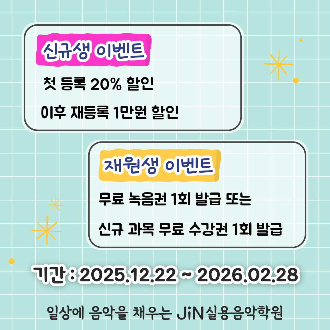 신규 수강생과 재원생 모두를 위한 특별 이벤트를 준비했어요.