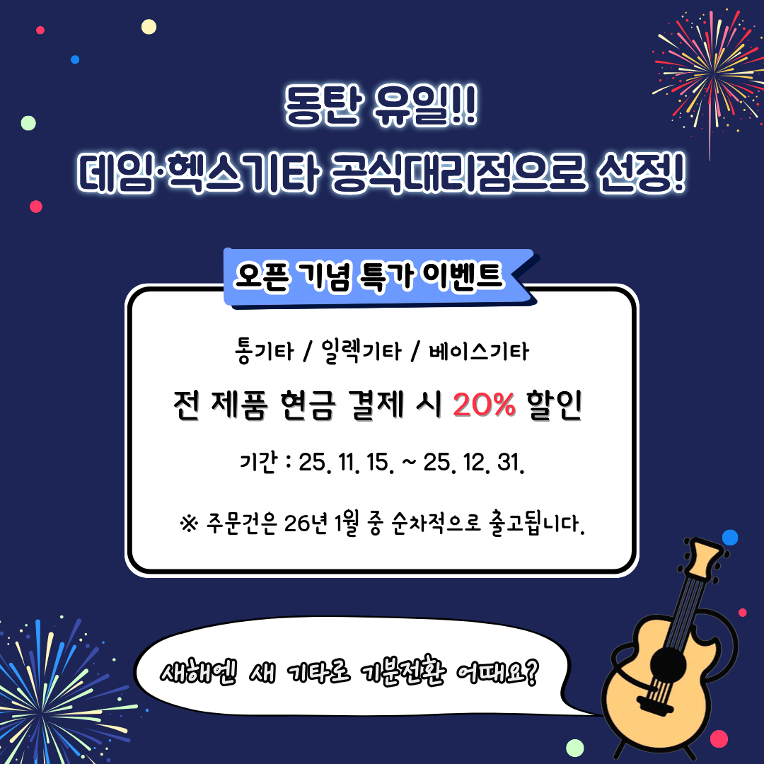 오픈 특가로 원하는 기타를 여유 있게 준비하세요.